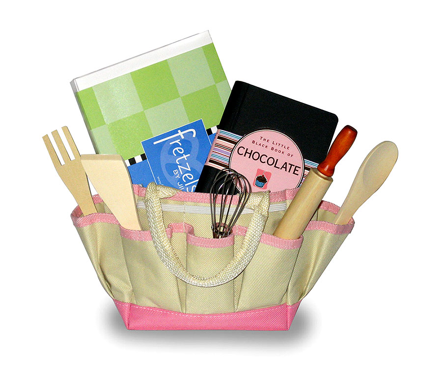 This canvas tote bag, complete with a set of mini baking utensils, is loaded up with one dozen Fretzels chocolate covered pretzels (six original assortment, six of our Fretzel of the Month flavor), three decadent gourmet mochas, and The Little Black Book of Chocolate – full of fun facts and indulgent chocolate recipes.